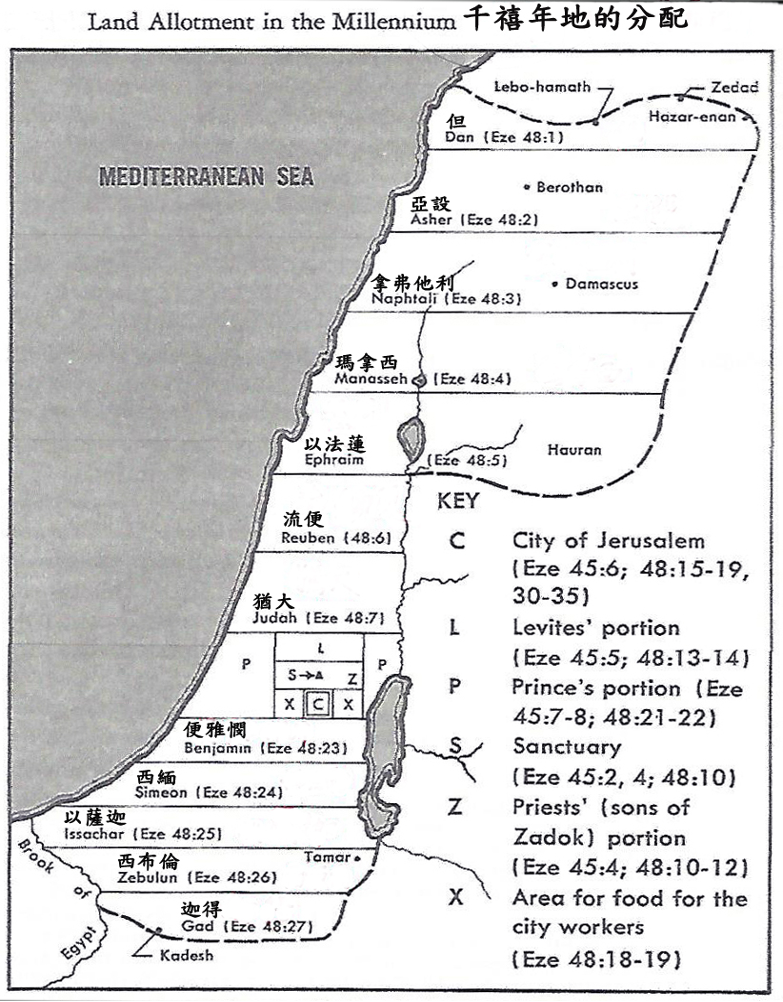 在祭司與利未人的聖職作出安排和聖殿得潔淨後,神就給地的分配作出吩咐: